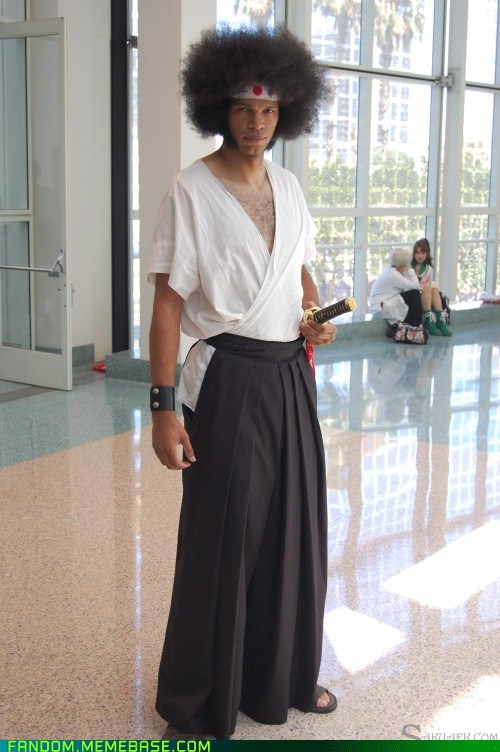 Afro samurai cosplay. This costume is difficult to see or hear inside due to the helmet. Afro afuro or better known as afro samurai afuro samurai is the main protagonist of the afro samurai series. While afro samurai was the protagonist of the series he isnt the only character that got its share of cosplay love. Well be releasing this film in parts.
