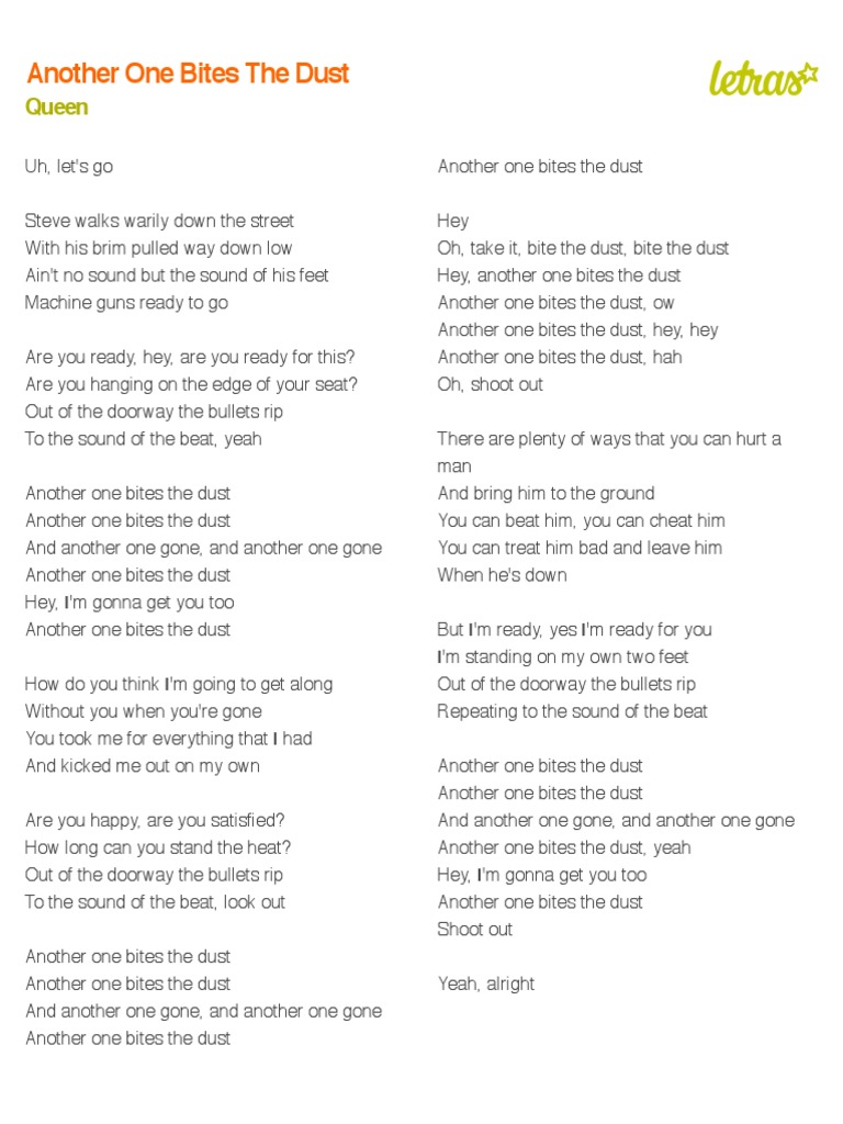 Another one bites the dust took the world by storm. The song was a worldwide hit charting number one on the us billboard hot 100 for three weeks from 4 october to 18 october their second number one single in the country. Another one bites the dust another one bites the dust another one bites the dust shout. Written by bassist john deacon the song featured on the groups eighth studio album the game 1980.