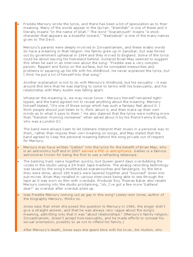 Which i believe is a song about fame and different ways to become famous is this the real life or is this just fantasy caught in a landslide no escape from reality a lot of people long to become famous then once they are famous they realize its nothing like they imagined. An intro a ballad segment an operatic passage a hard rock part and a reflective coda. I think your uncomplicated article about the meaning of bohemian rhapsody is concise and most likely the best explanation of the song. Bohemian rhapsody one popular theory is that it was mercurys way of coming out as gay or bisexual.