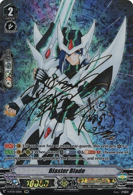 Ii shipping by registered post internationallocal dhl ecommerce or equivalent for international shipping 1 st card 1000int 1000local additional item 200 per card. The blaster armaments are magical weapons developed by blasteed with larousse a royal paladin as the first wielder. Shine forth brave sword and defender of the weak. If you do choose an opponents grade 2 or greater rear guard and retire it.