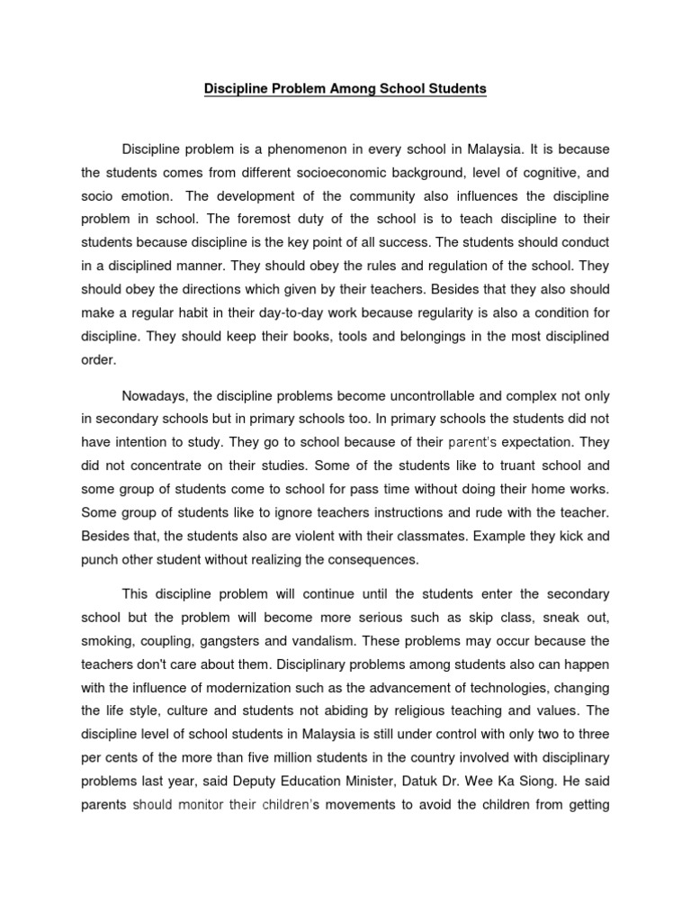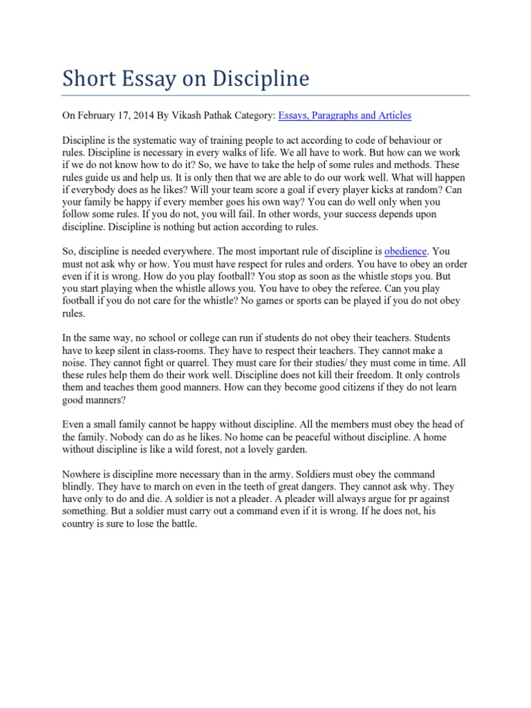 Essay on discipline discipline is something that keeps each person in control. Essay on discipline in student life essay 4 250 words discipline in student life is the art of obeying certain set of rules that help us to live a life of order. Some people take discipline seriously and are always watchful of their own acts and the. Discipline essay 8 500 words introduction.