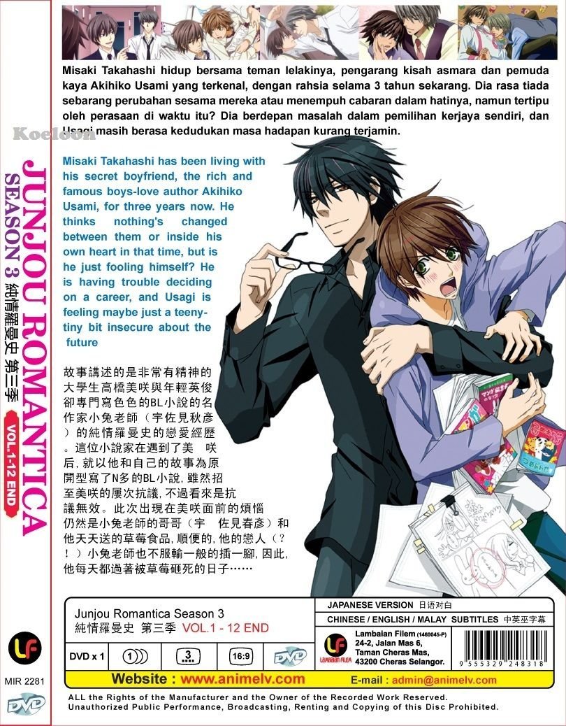 The quality had increased drastically lots of new and improved character design and more laugh out loud humor. Misaki takahashi has been living with his secret boyfriend the rich and famous boys love author akihiko usami usagi for three years now. Poll which is your favorite couple. Junjou romantica 3 is a wonderful continuation of the other two seasons.