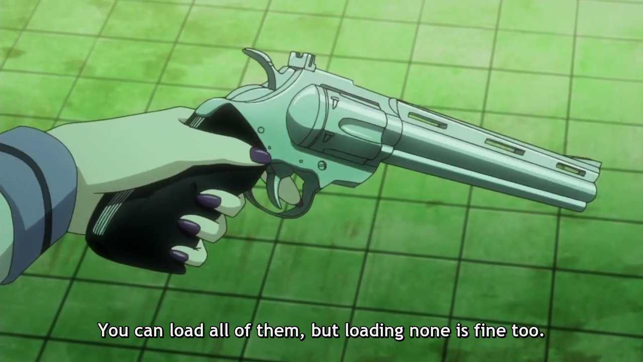Reigning class gambling champion mary attempts to hustle unsuspecting transfer student yumeko jabami into a high stakes game of rock paper. Kurimu plays against midari ikishima and ayame nureba together. Then the opponent has to declare a number between one and nine. The game is played with a five shot revolver.