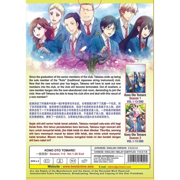 The first season of kono oto tomare premiered on april 7 2019 and with a total of 13 episodes it finished airing on jun 30 2019. Season 2 episode 3 subtitle indonesia type. The adaptation of the manga series released on april 6 2019. Music drama school shounen.