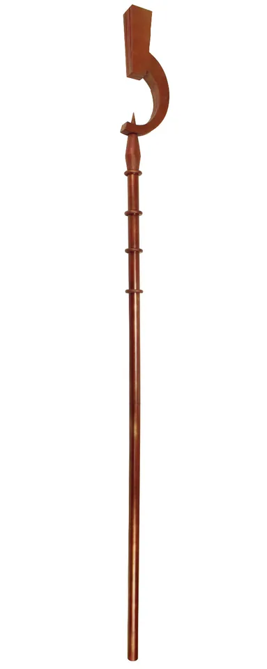 First you want to start by patterning out the shape of the head of the staff on a piece of wood.