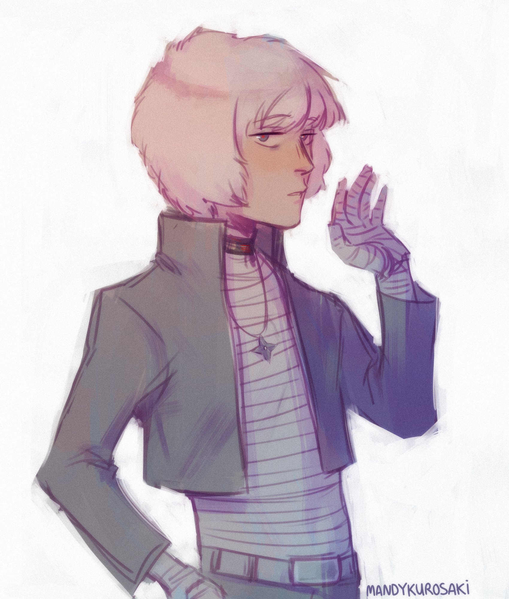 Ranmaru is a thin short teenage boy with gray blue eyes and soft fluffy looking white hair with bangs.