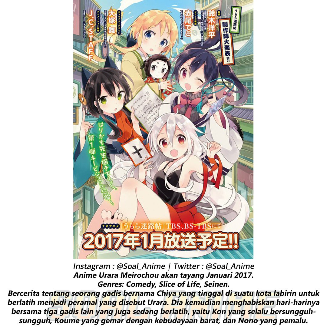 Terbitan bulan juni dari majalah milik houbunsha manga time kirara mengumumkan bahwa manga empat panel urara meirochou akan tamat pada terbitan selanjutnya. With sayaka harada kaede hondo kikuko inoue ai kayano. Its the anime that made me into a weeb. Chiya enters the town of meirocho to begin her training as a fortune tellers apprentice and hopefully become the next urara.