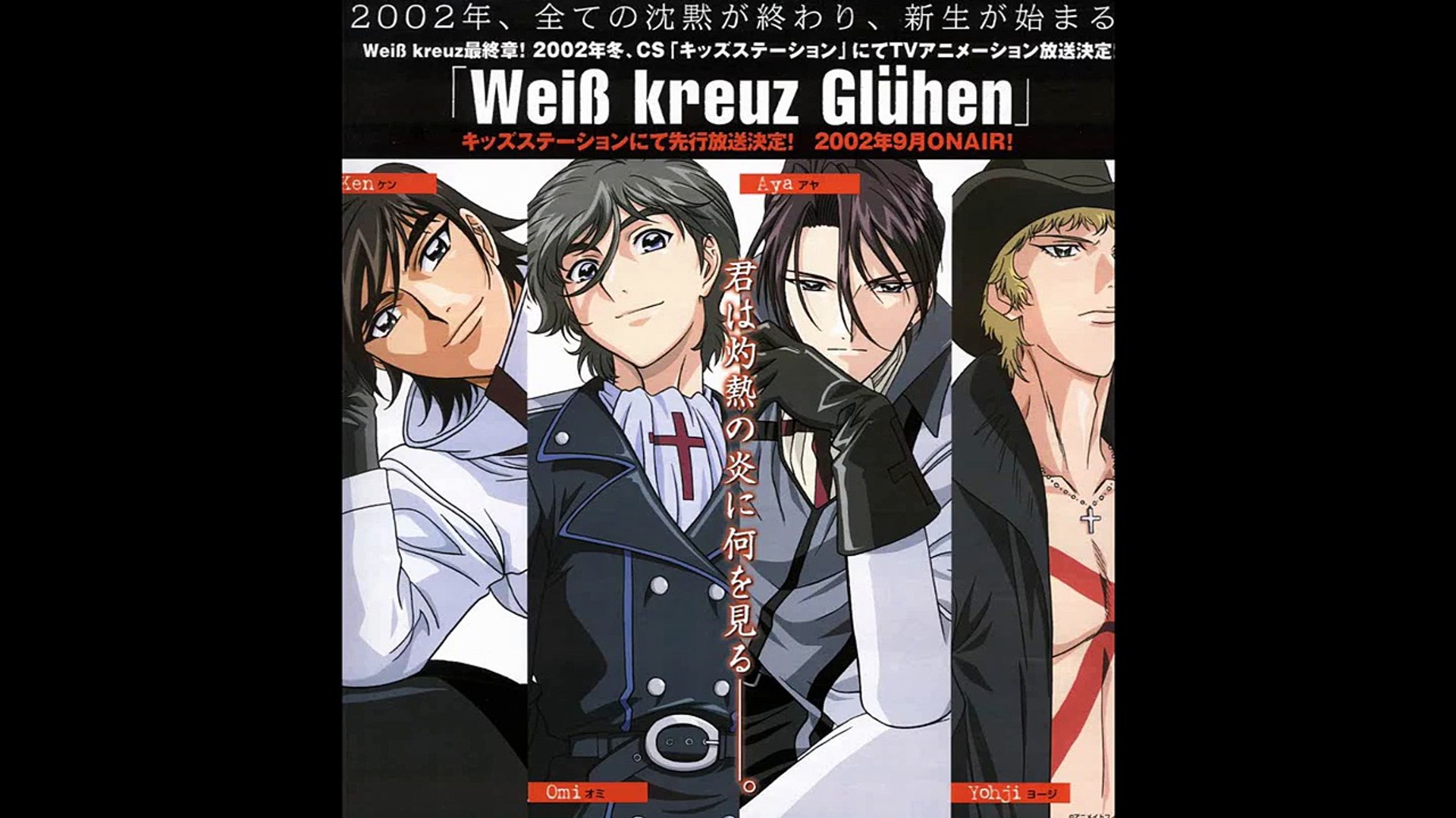 Weiss kreuz. The group weiss pronounced vais consists of the serious leader aya fujimiya the soccer lover ken hidaka the young computer expert. German for white cross is a series about four assassins that work in a flower shop. Weiss kreuz vaisu kuroitsu lit. Aya yoji ken and omi are the four young men who comprise weiss kruez wk an assassin group who eliminates certain menaces to society.